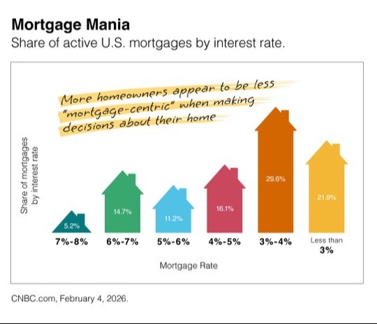 Source: CNBC.com, February 4, 2026 — “A surprising share of homeowners have high mortgage rates. Here’s the breakdown.”